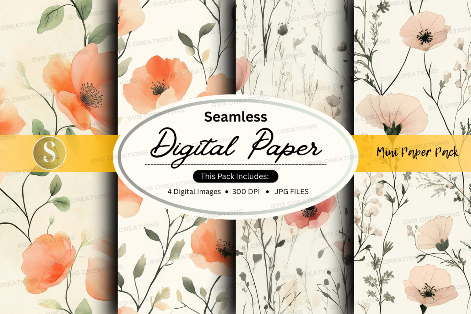 Seamless digital paper - floral pattern digital paper pack