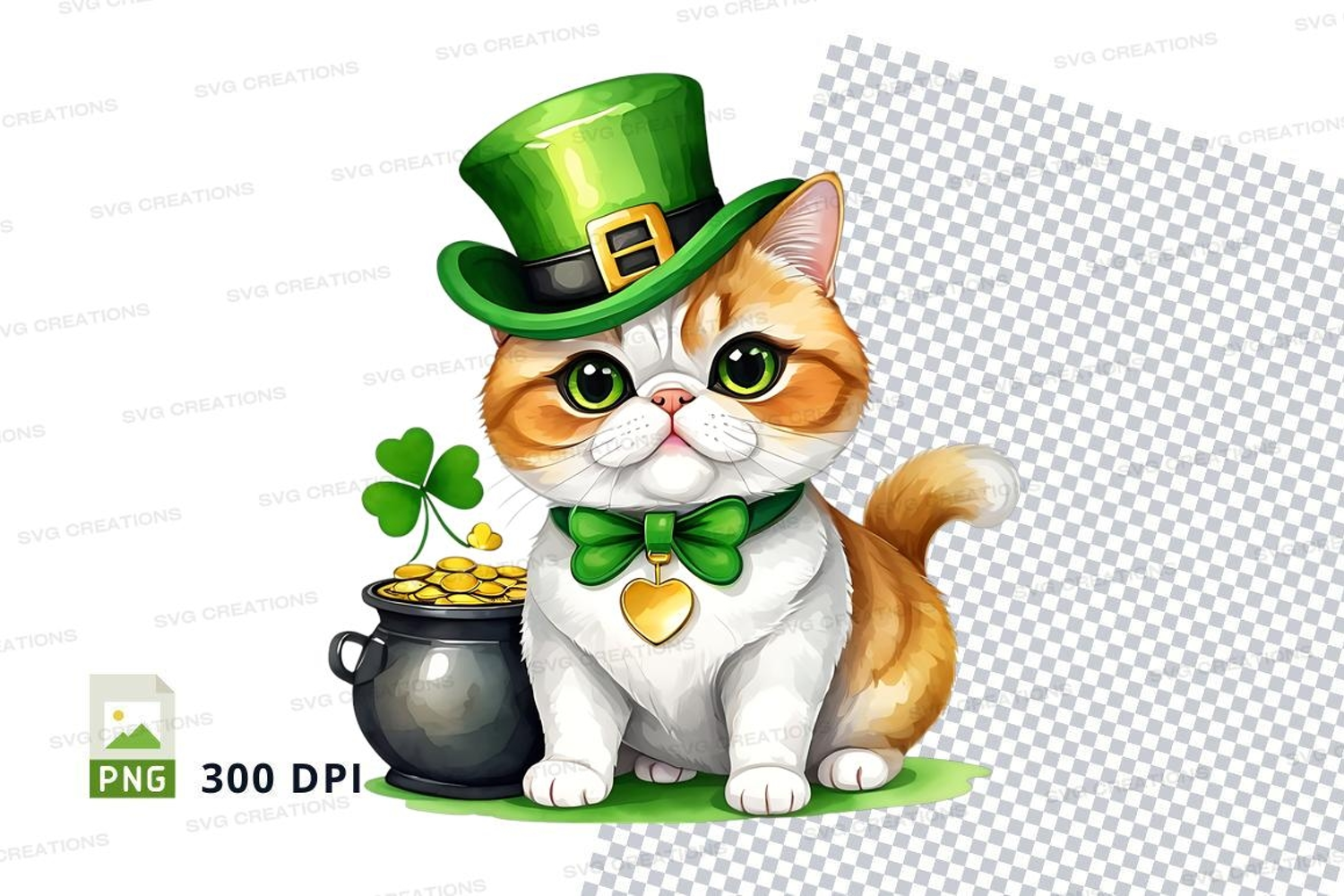 Illustration Celebration Clipart Cat Hat Necklace Bow Tie Shamrock St Patrick's Day Pot Of Gold