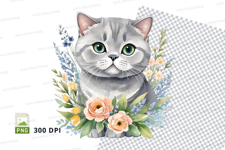 Gray cat with floral design tote bag mockup example image 1