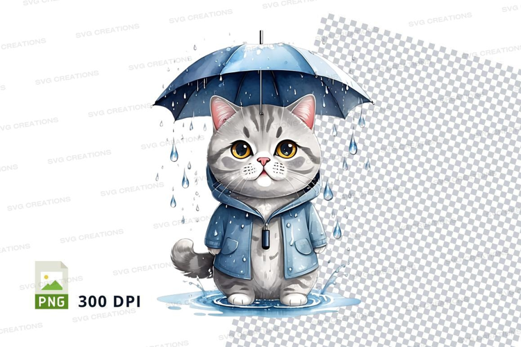 Illustration Cartoon Clipart Cat Rain Umbrella Raincoat