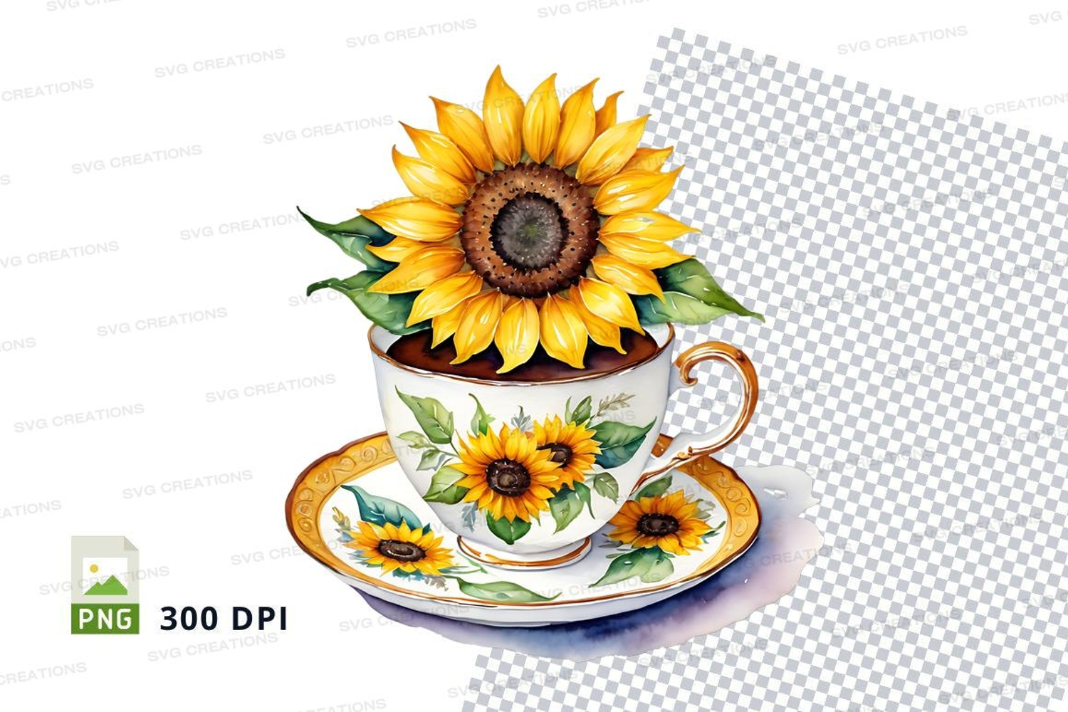 Similar Design Products to Teacup and saucer with sunflower design mockup