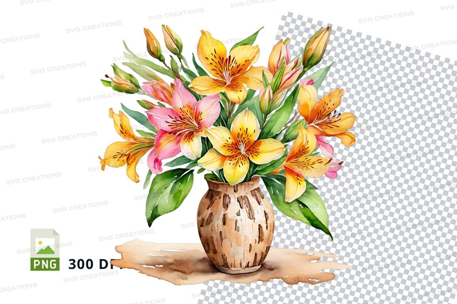 Watercolor bouquet of flowers in vase clipart png example image 1