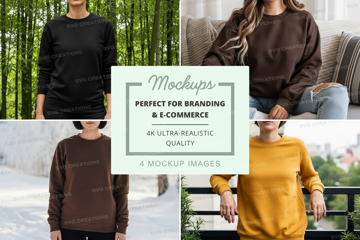 Mockup Sweatshirt Crew Neck Model Photography Casual Wear Black Sweatshirt Brown Sweatshirt Yellow Sweatshirt Long-sleeve Sweatshirt