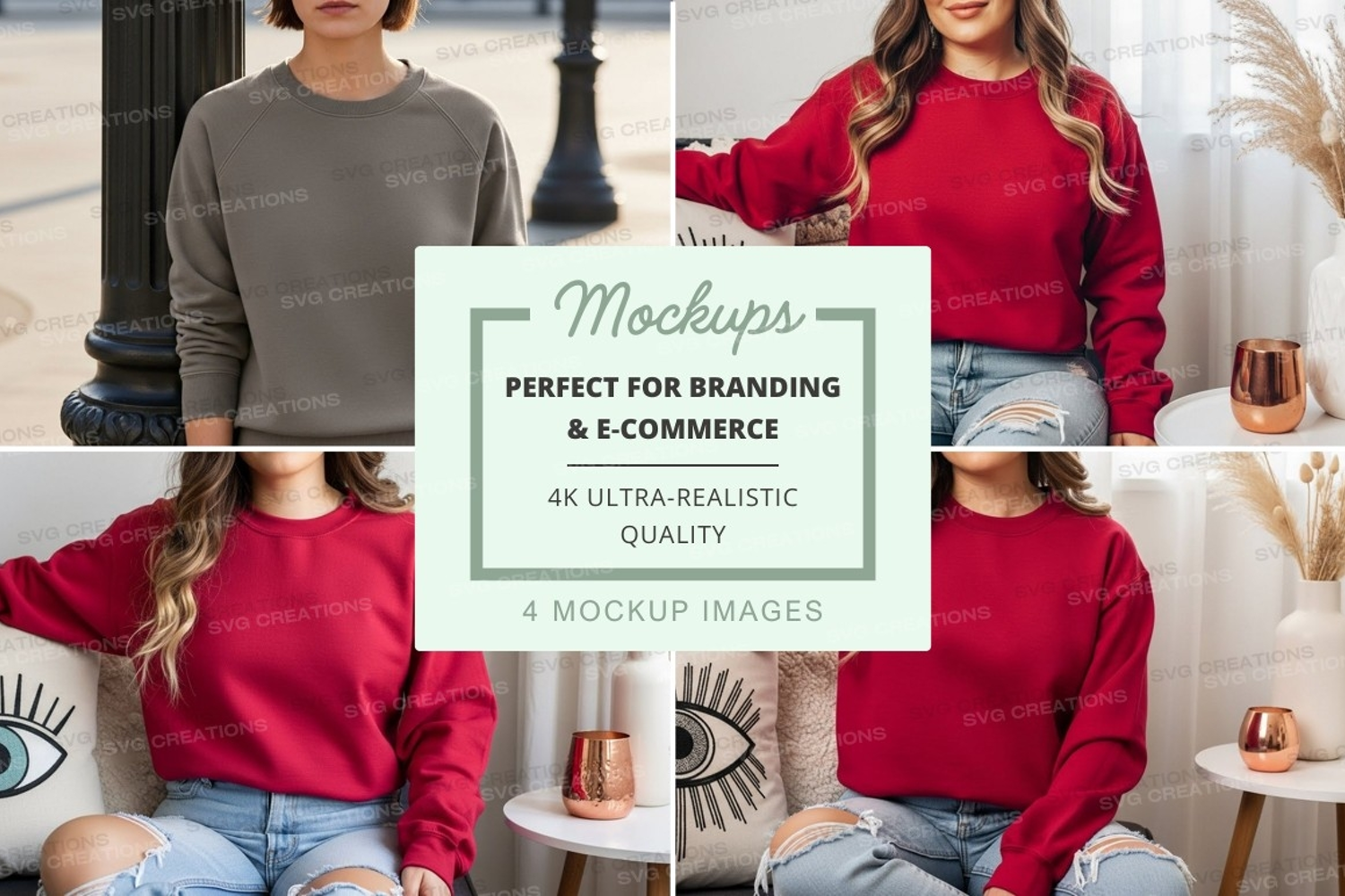 Sweatshirt mockup featuring a model in various poses