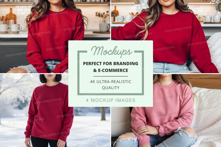 Pink Mockup Red Indoor Sweatshirt Home Decor Models Casual Wear