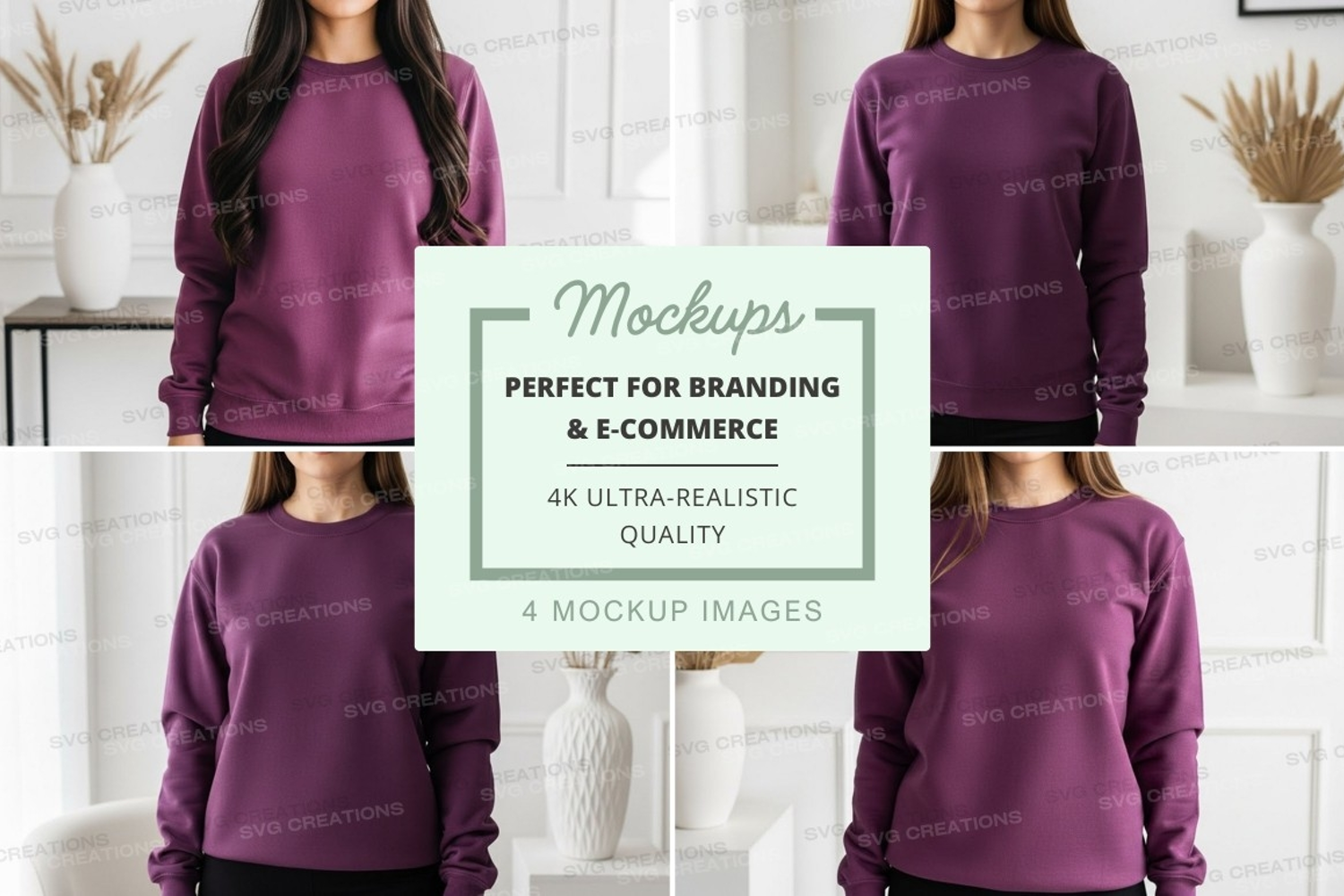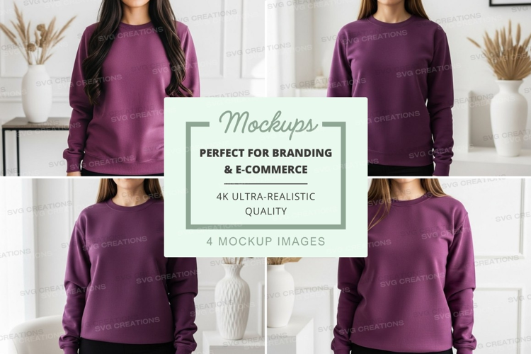 Decorative Mockup Model Purple Plants Vase Sweatshirt Home Decor Long Sleeve