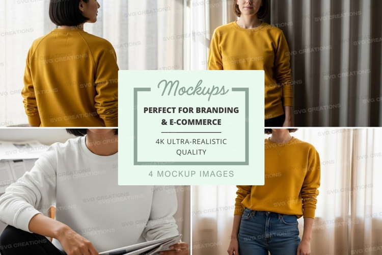 Similar Design Products to Sweatshirt mockup - crew neck, long sleeve, mustard yellow a