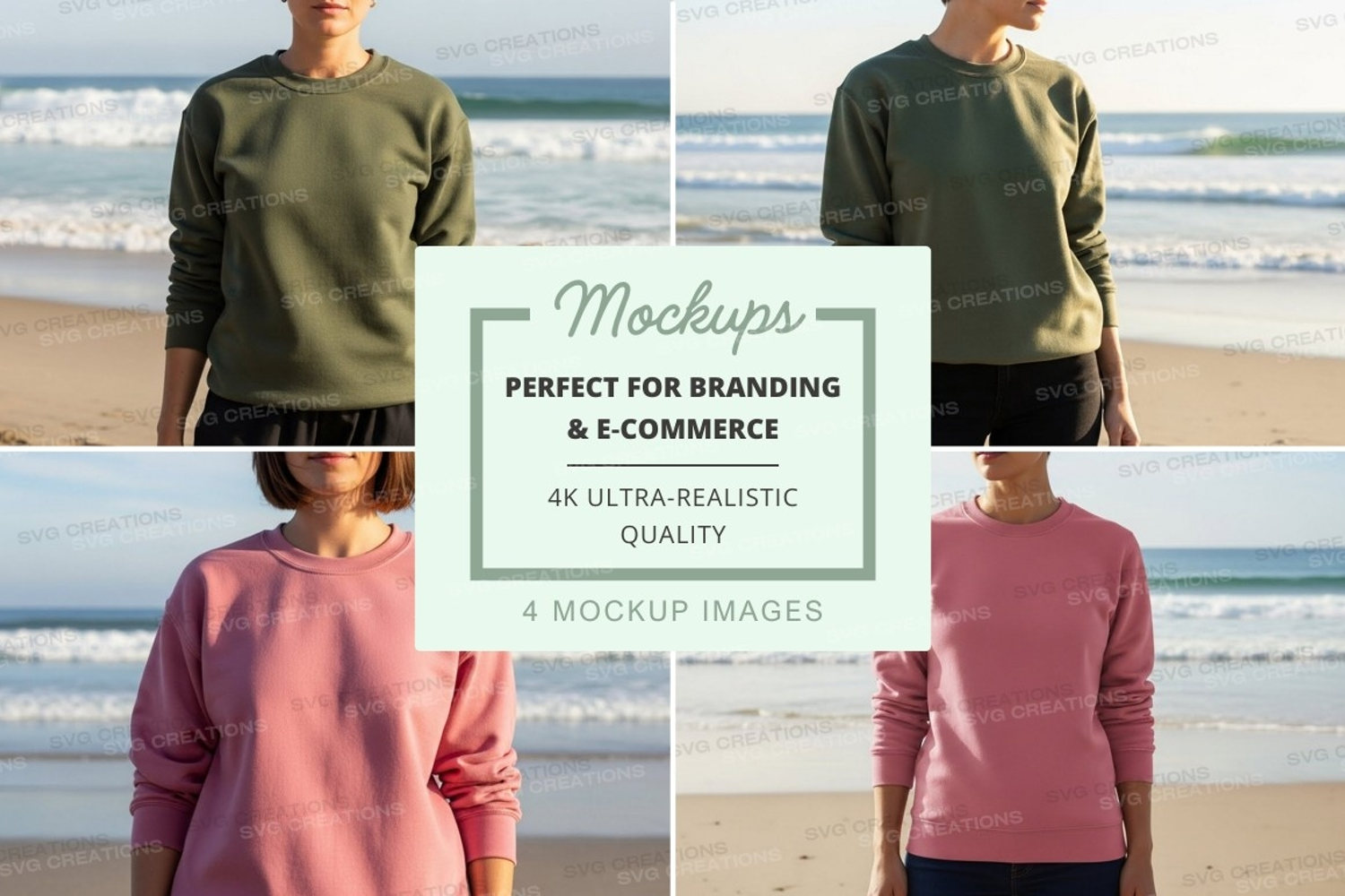Pink Clothing Mockup Apparel Outdoor Beach Front View Back View Sweatshirt Olive Green