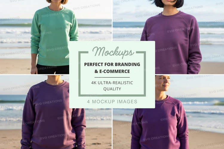 Mockup Apparel Collage Beach Purple Sweatshirt Mint Green Long Sleeve