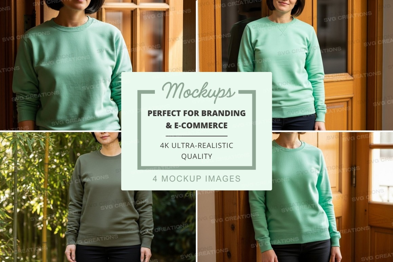 Mockup Outdoor Front View Side View Indoor Sweatshirt Mint Green Olive Green