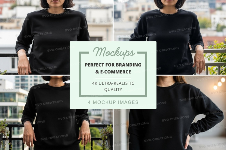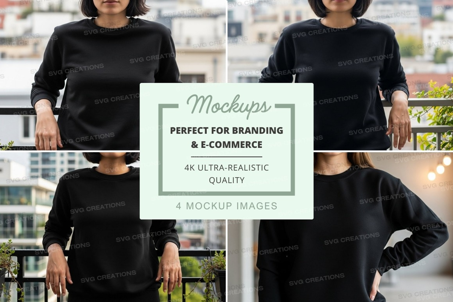 Mockup Model Cityscape Balcony Black Sweatshirt Oversized Sweatshirt