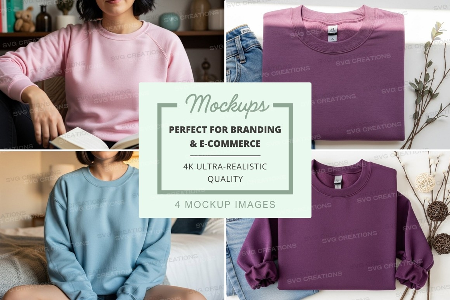 Mockup Apparel Collage Purple Folded Light Blue Light Pink Sweatshirt Mockup Sweatshirts Laid Flat