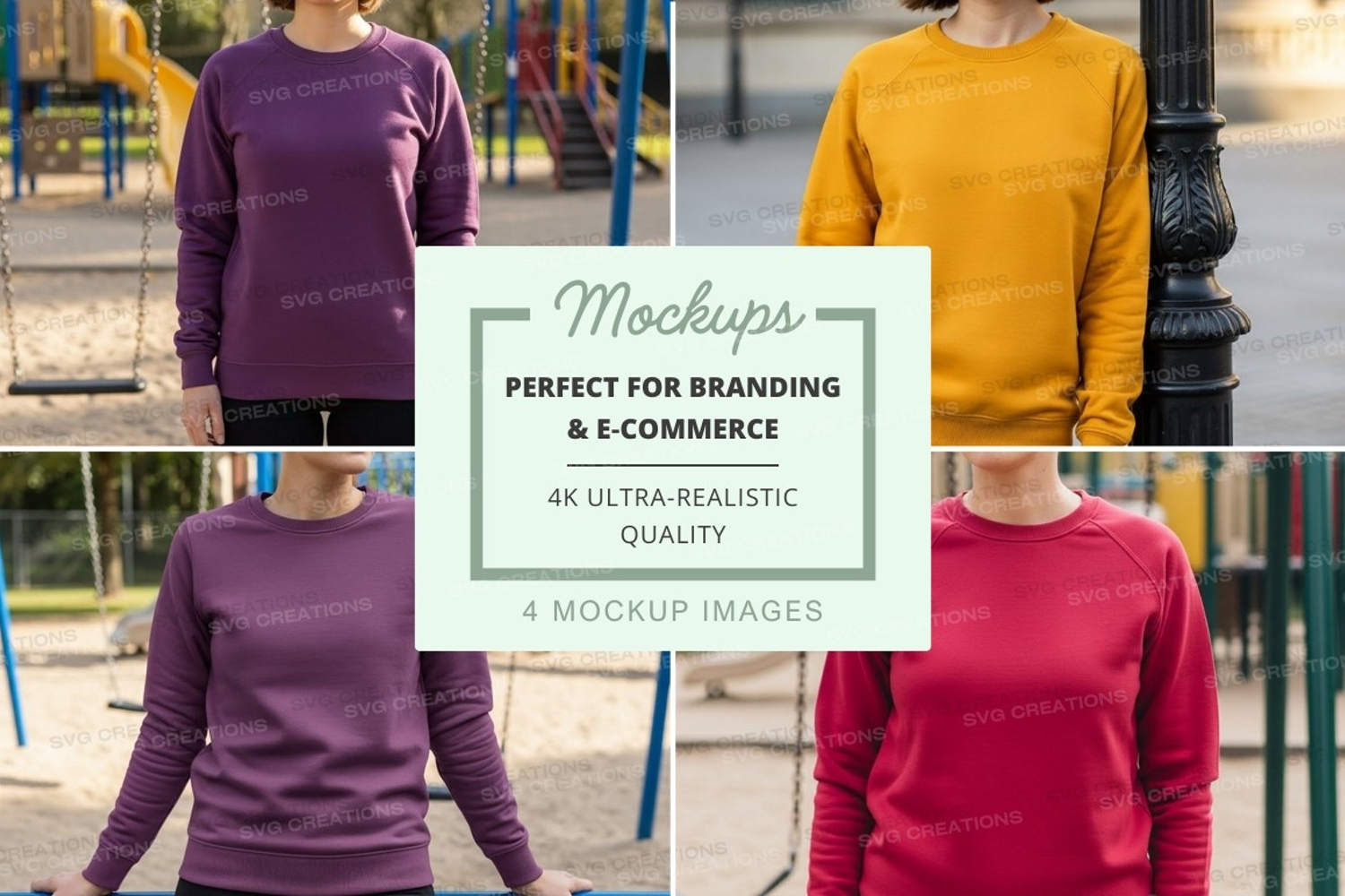 Mockup Outdoor Model Purple Yellow Red Sweatshirt Playground Dark Purple