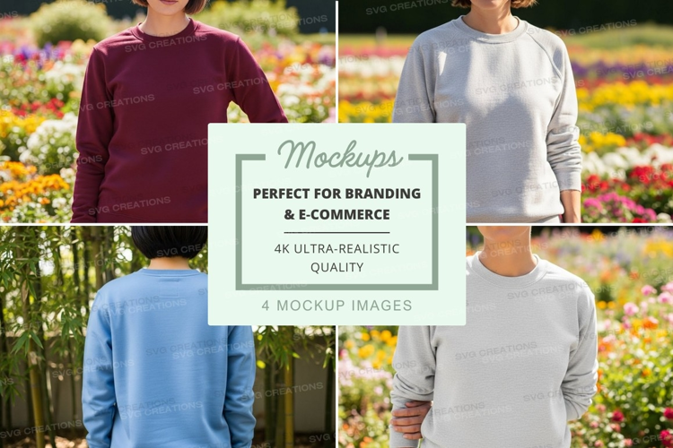 Flowers Mockup Outdoor White Front View Light Blue Field Back View Maroon Sweatshirt