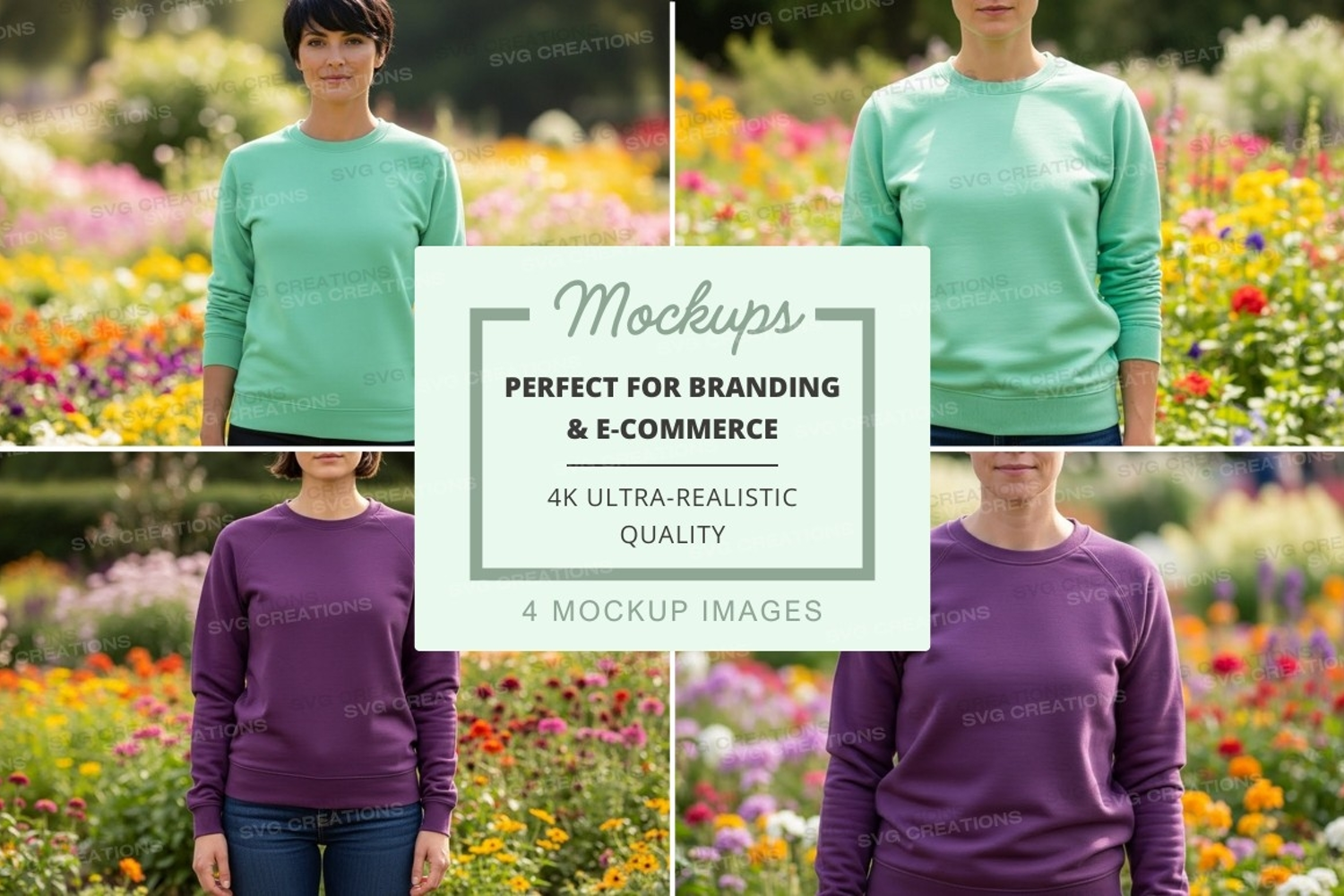 Flowers Mockup Apparel Outdoor Garden Purple Sweatshirt Mint Green Long Sleeve
