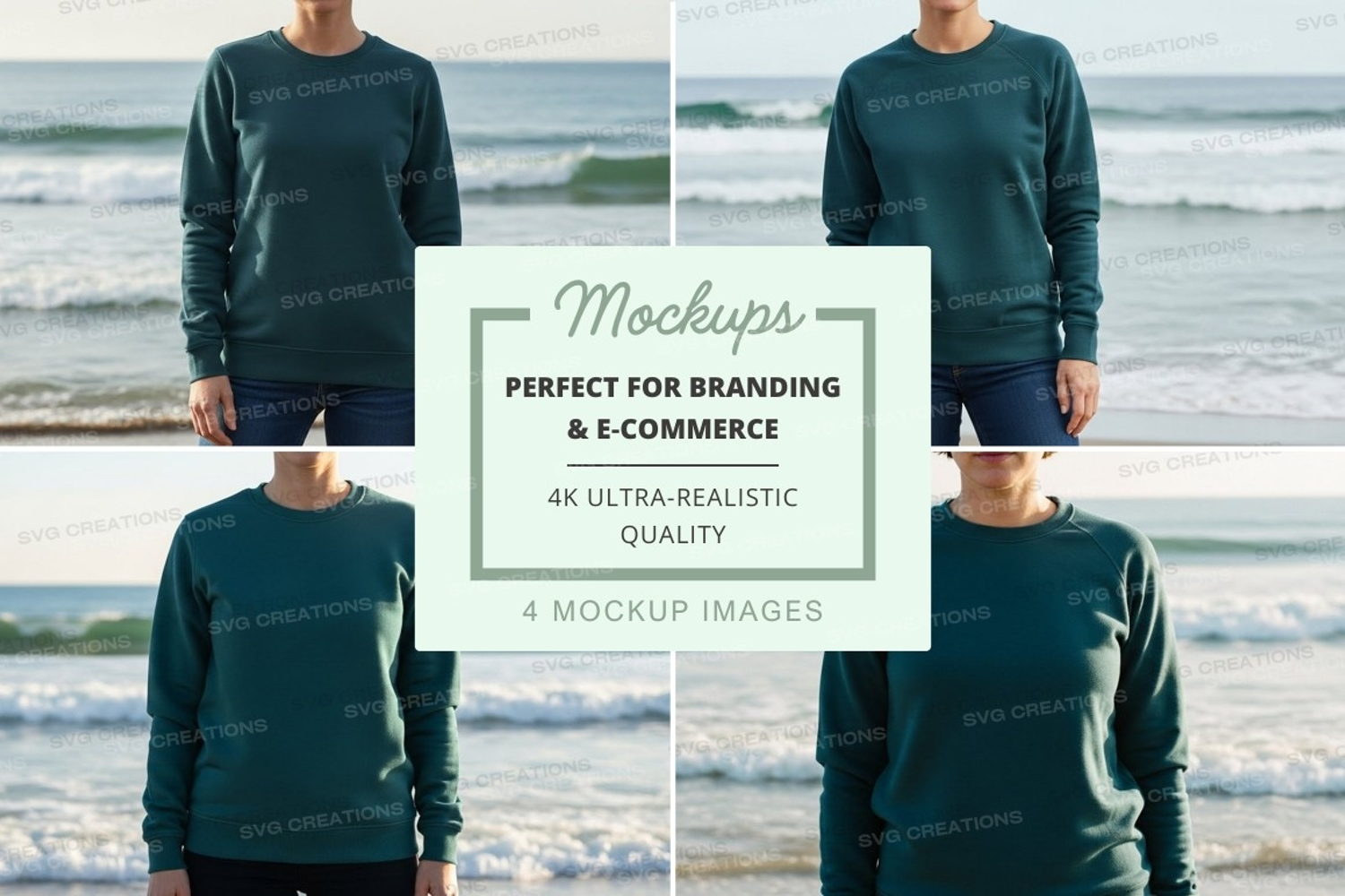Ocean Mockup Outdoor Collage Beach Teal Sand Sweatshirt Long Sleeve