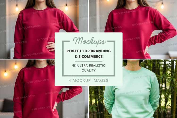 Mockup Apparel Model Red Light Green Sweatshirt Long Sleeve Crew Neck