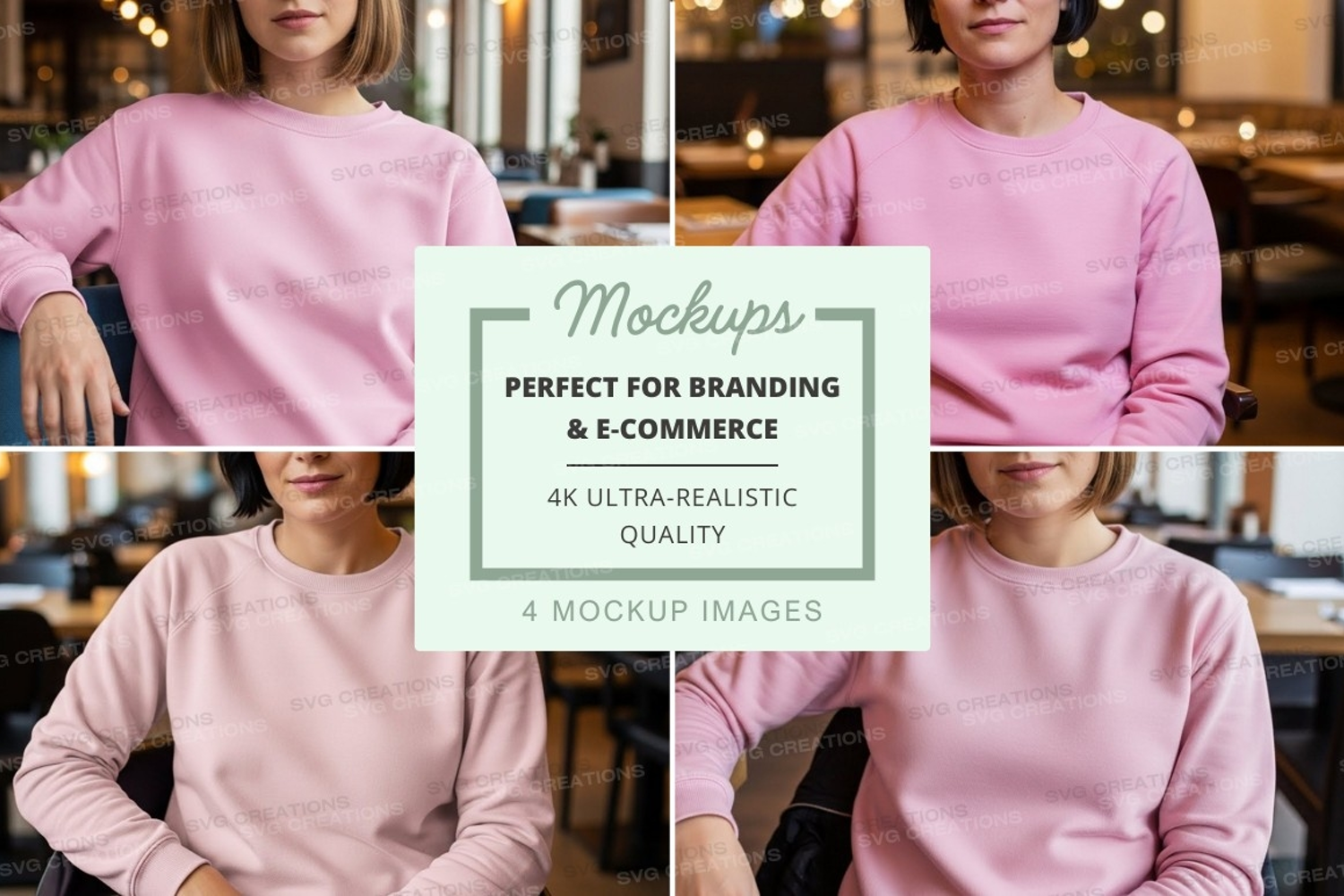 Pink Mockup Cafe Indoor Sweatshirt Models Long-sleeve Casual Wear