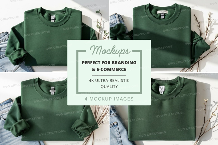 Book Green Flowers Mockup Flat Lay Decorative Elements Sweatshirt Crew Neck