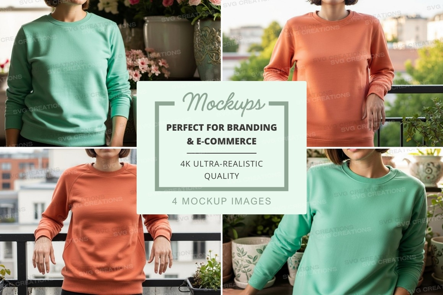 Mockup Outdoor Peach Buildings Sweatshirt Mint Green Models Potted Plants Long-sleeve