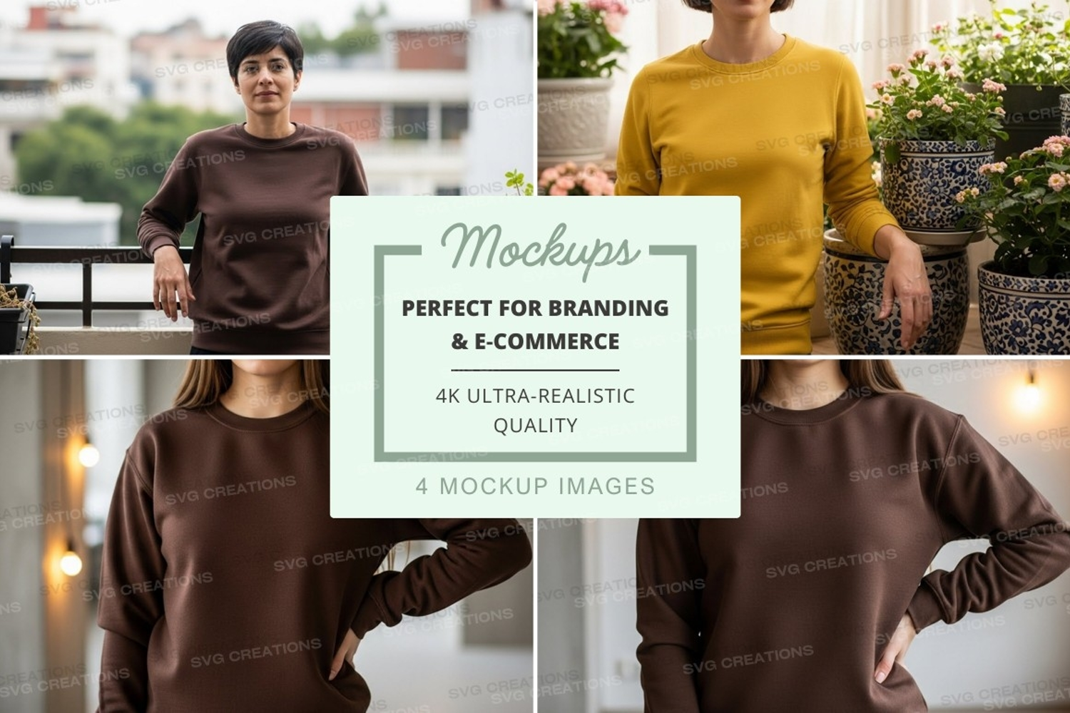 Mockup Long Sleeve Model Photography Women's Clothing Casual Wear Oversized Sweatshirt Brown Sweatshirt Yellow Sweatshirt
