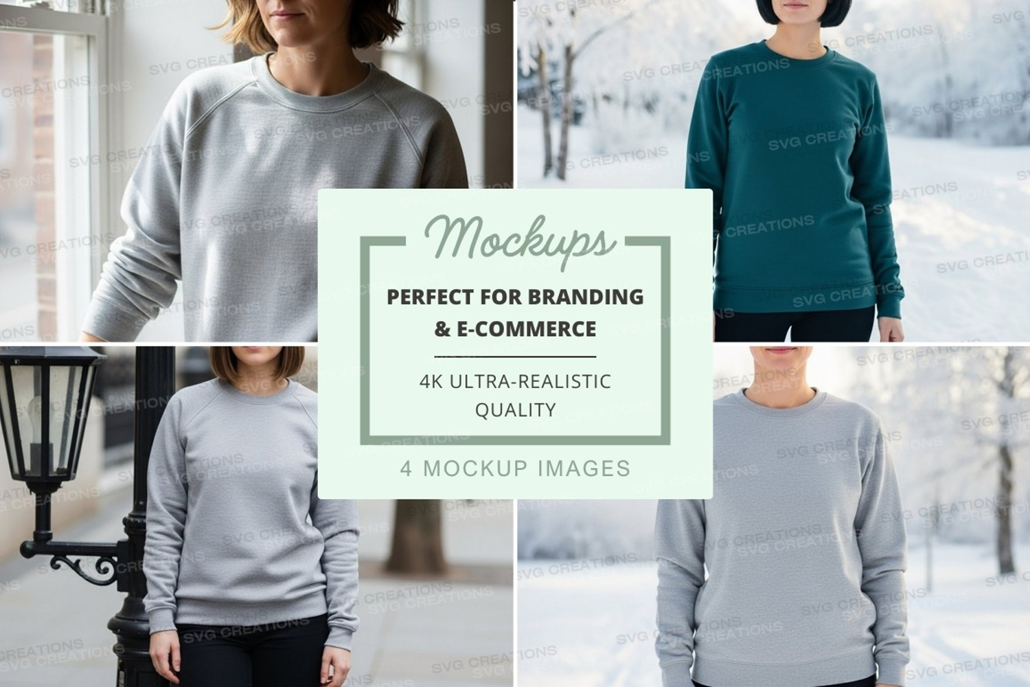 Mockup Winter Outdoor Model Indoor Sweatshirt Dark Green Light Gray