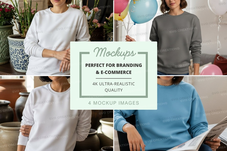 Similar Design Products to Group of people wearing crew neck sweatshirts mockup