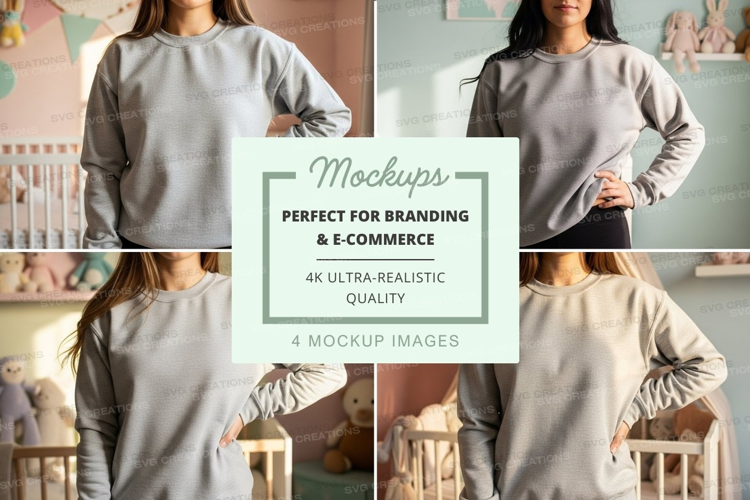 Mockup Model Toys Gray Indoor Sweatshirt Decorative Items Crew Neck Oversized