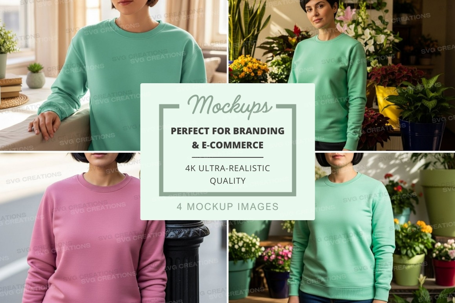 Pink Mockup Plants Indoor Light Green Sweatshirt Long Sleeve