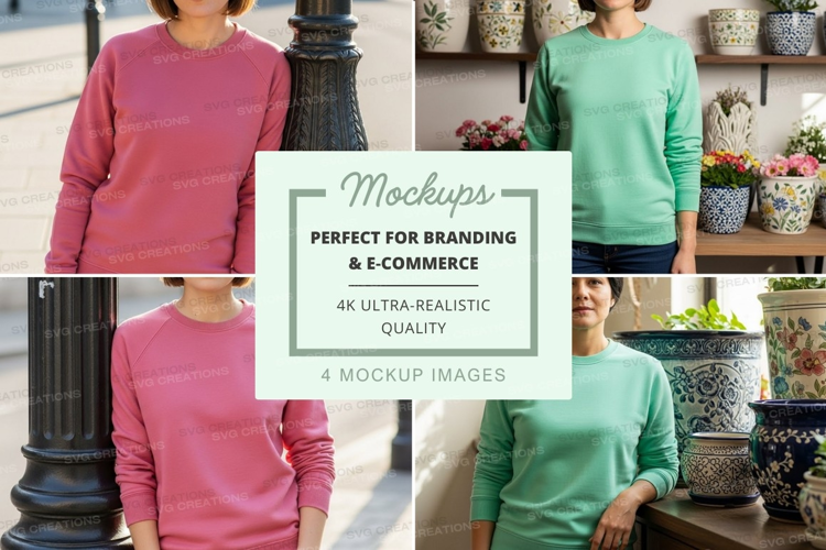 Pink Green Mockup Collage Model Plants Sweatshirt Decorative Background