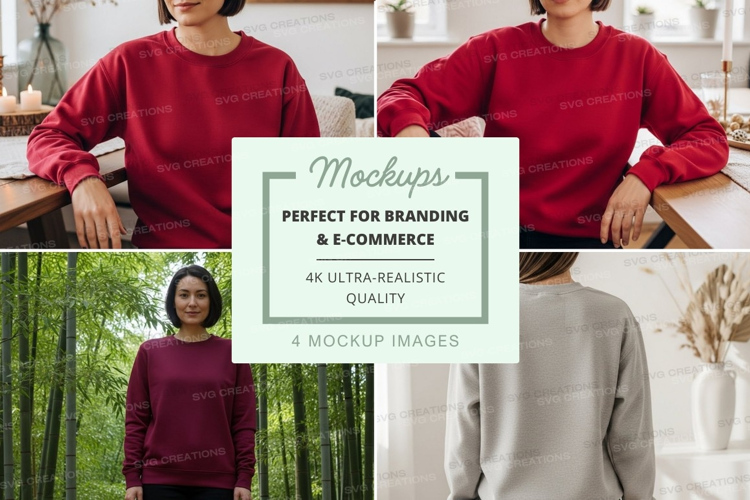Front View Side View Back View Sweatshirt Mockup Red Sweatshirt Indoor Setting Outdoor Setting Burgundy Sweatshirt