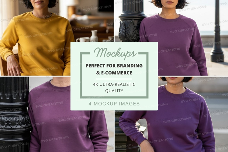 Fashion Mockup Apparel Purple Sweatshirt Mustard Crew Neck Oversized Fit