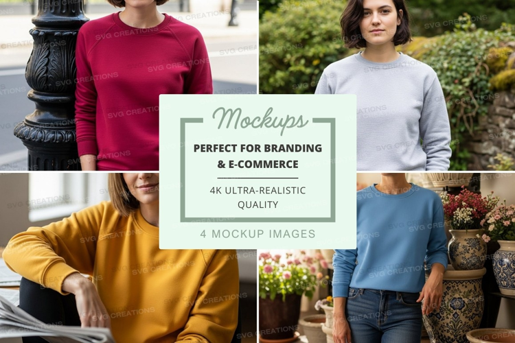 Women's crew neck sweatshirt mockup in multiple colors example image 1