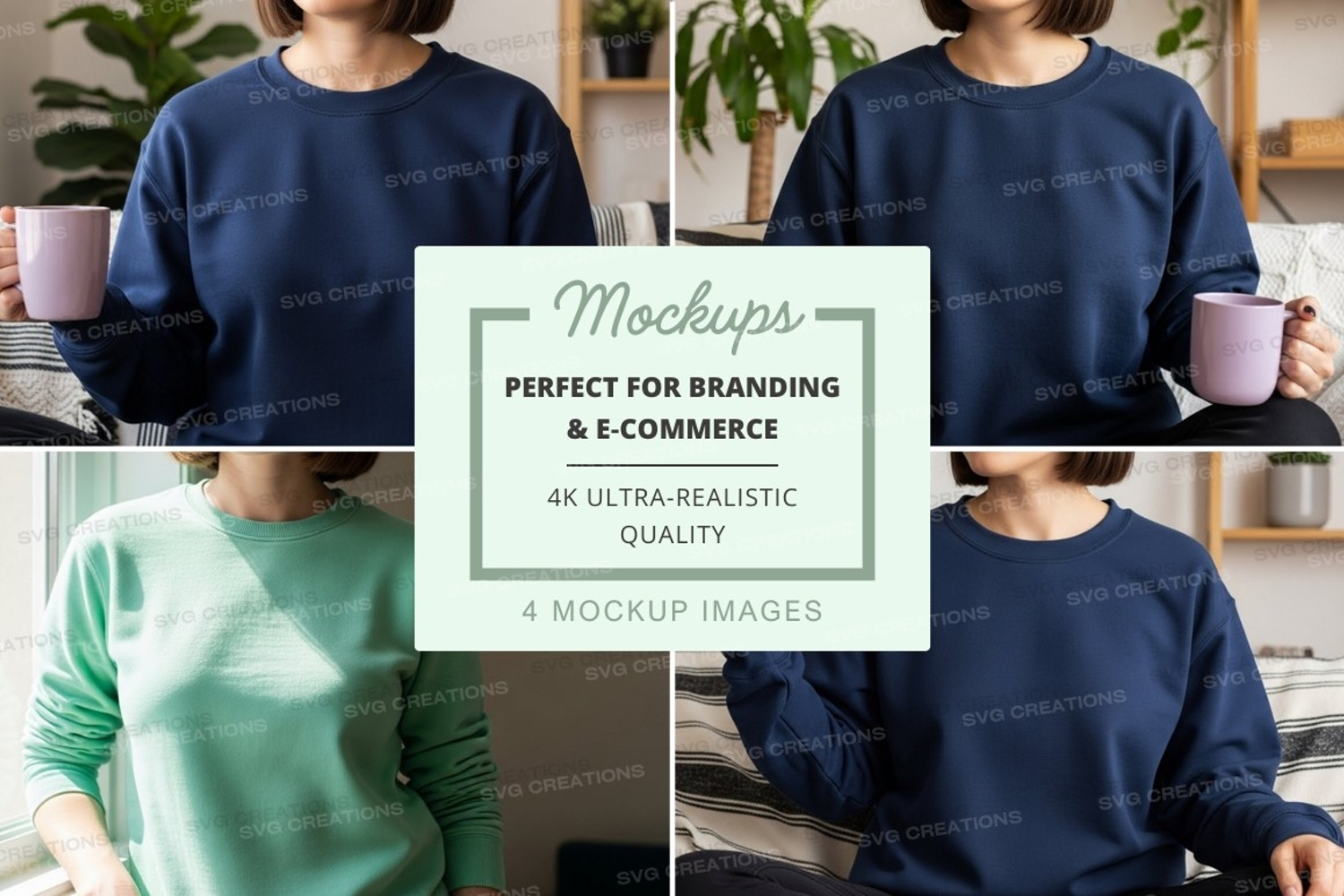 Green Mockup Blue Mug Indoor Cozy Sweatshirt Home Decor