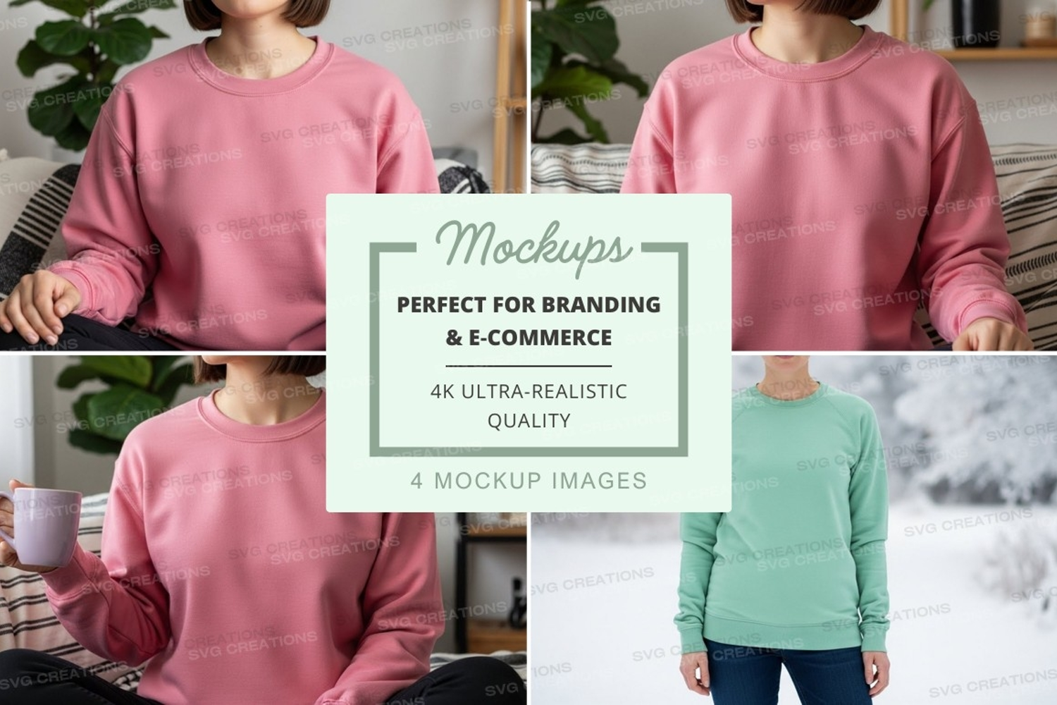 Pink Green Mockup Apparel Collage Model Sweatshirt
