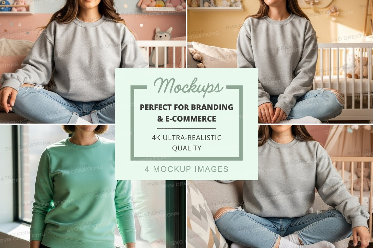 Mockup Collage Model Sweatshirt Light Gray Casual Wear Seated Poses