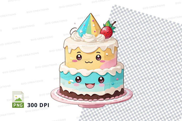 Cute cartoon two-tier birthday cake clipart png example image 1