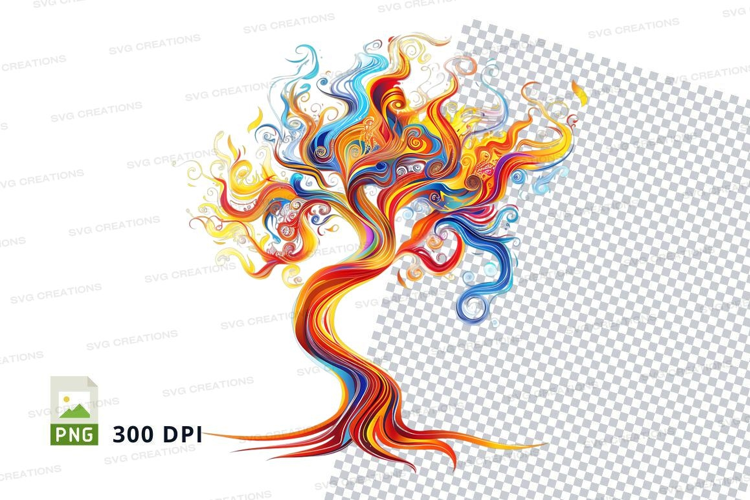 Clipart Png Transparent Background 300 Dpi Colorful Tree Abstract Tree Swirling Branches