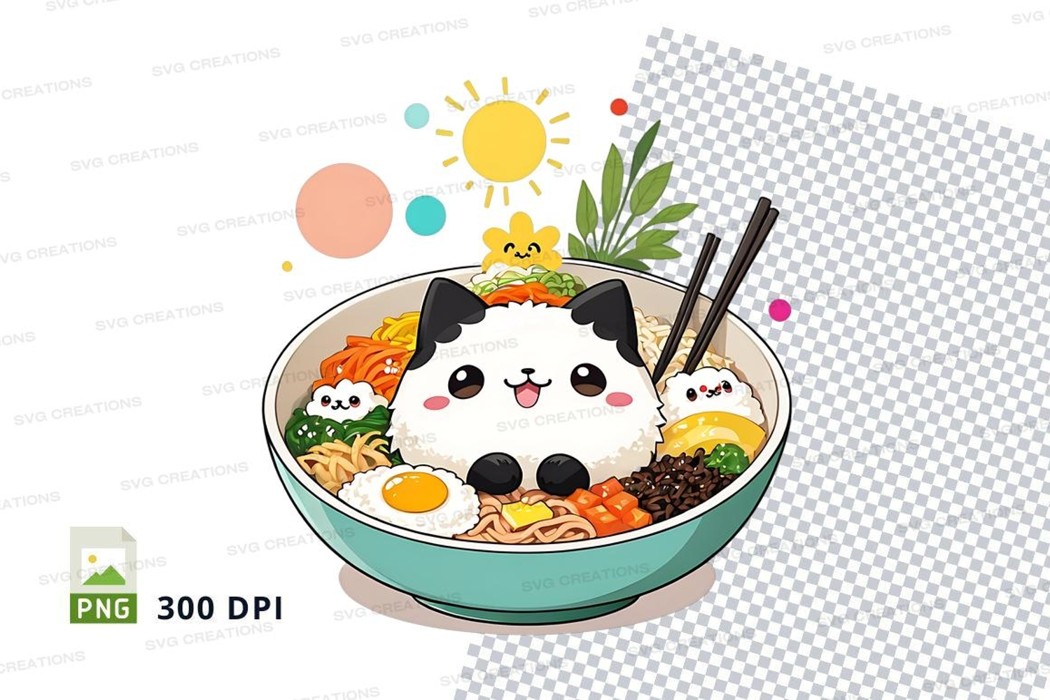 Decorative Illustration Food Sun Colorful Leaves Panda Bowl Ramen
