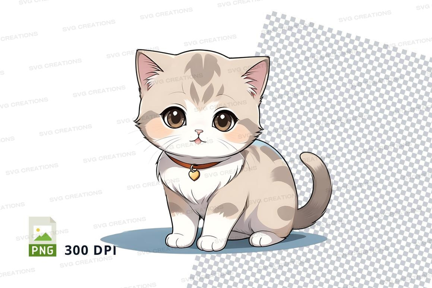 Illustration Cartoon Animal Clipart Png Cat Kitten 300 Dpi Heart Tag Brown Collar