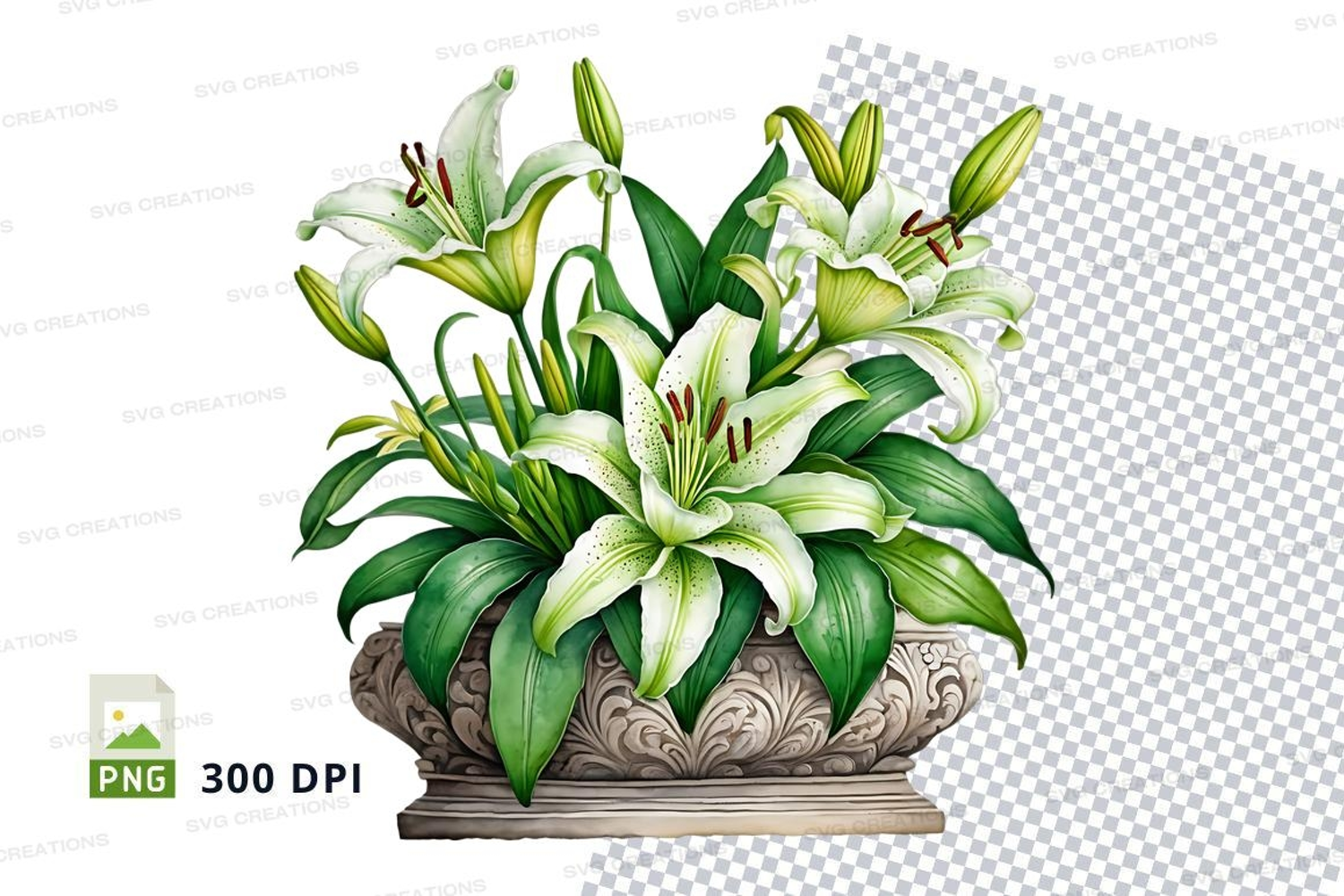 Similar Design Products to White lilies in decorative pot clipart png