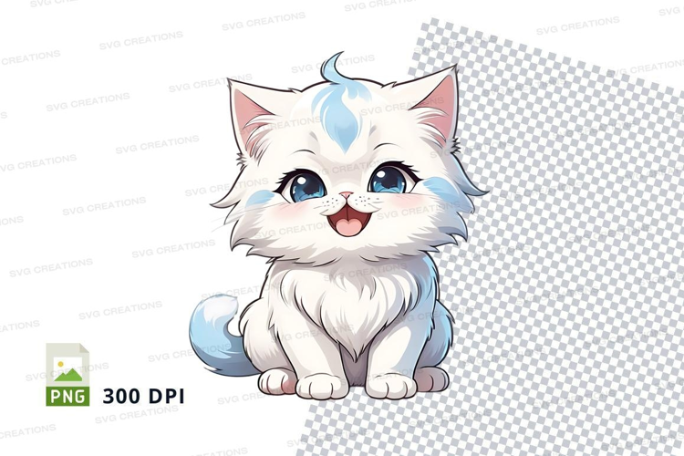 Cartoon Clipart Png White Kitten Smiling Blue Eyes