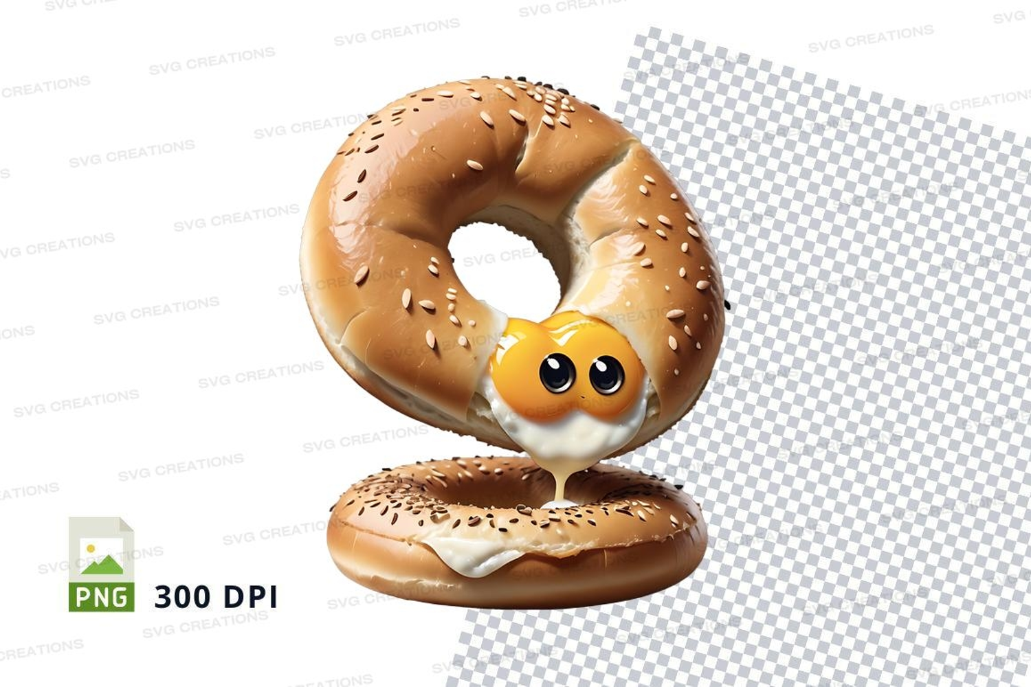 Illustration Cartoon Mockup Face Transparent Png 300 Dpi Sesame Seeds Bagel Glossy Finish