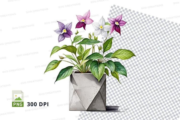 Similar Design Products to Flower pot with purple and white flowers mockup