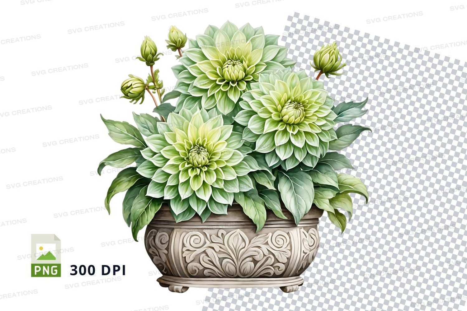 Similar Design Products to Green dahlia flowers in ornate pot clipart png