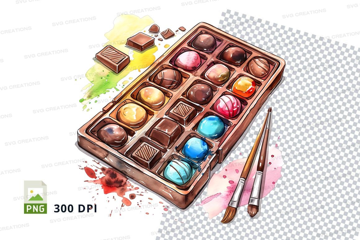 Colorful Artistic Mockup Hand-painted Png 300 Dpi Candies Chocolates Chocolate Box High-resolution