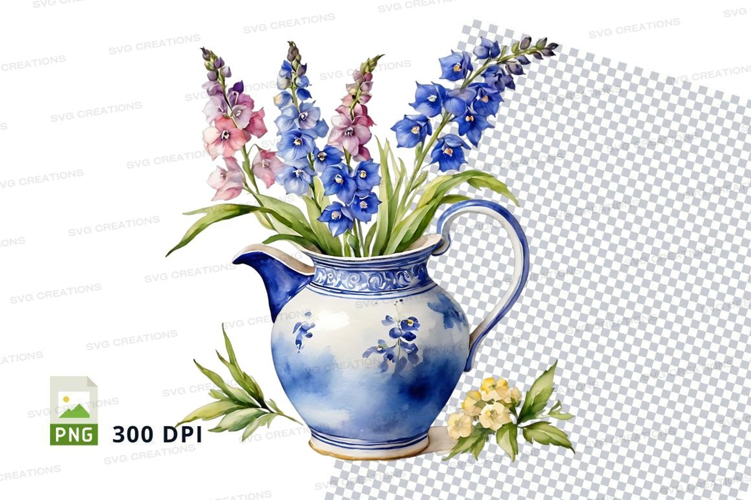 Vintage Flower Pattern Clipart Bouquet Teapot 300 Dpi Blue And White Checkered Background