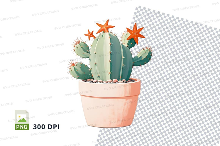 Illustrated cactus in pot clipart png example image 1
