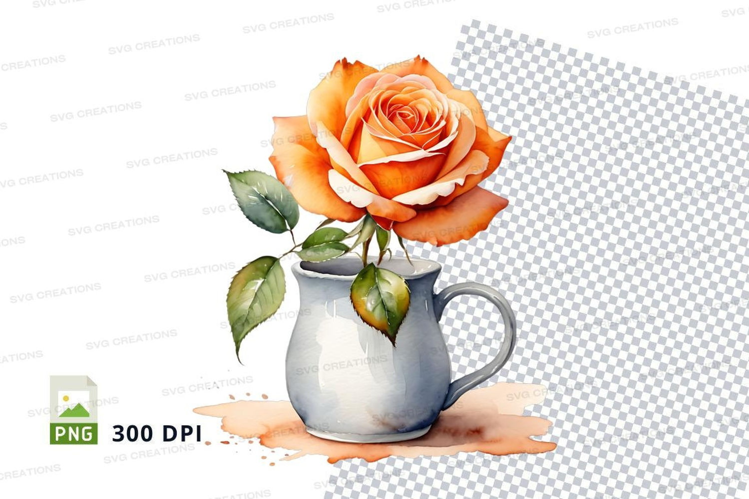 Illustration Watercolor Rose Mug Vase 300 Dpi Patterned Background