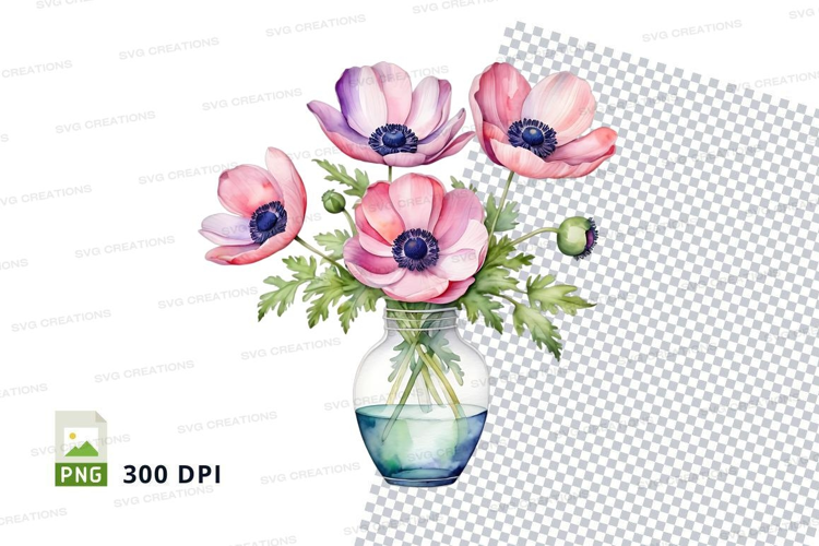 Watercolor anemone flowers in vase clipart png example image 1
